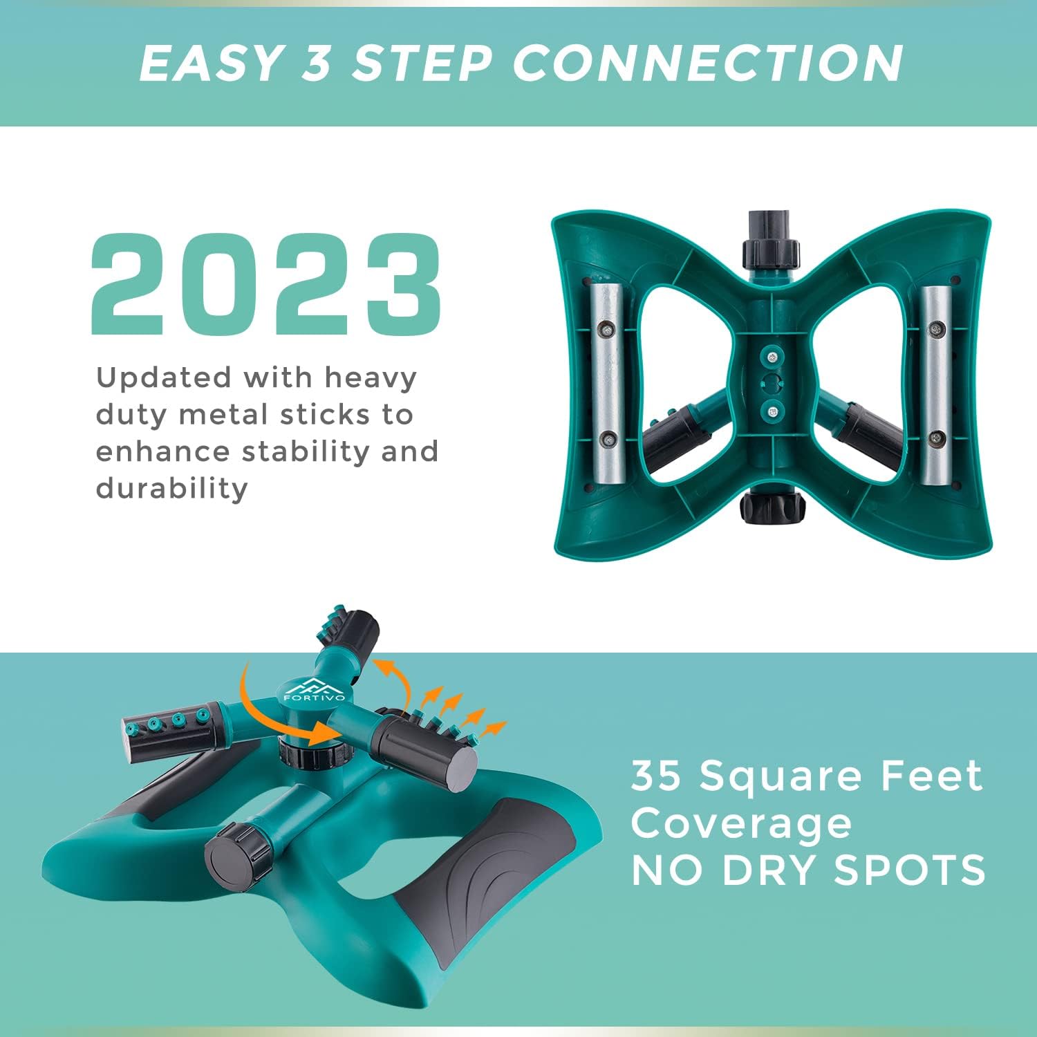 Sprinklers for Yard Large Area - 3 Step Easy Setup. Has a quick connect grass sprinkler for lawn hose adapter that makes installation super quick. If you have any issues with the setup, feel free to reach out and we will help you